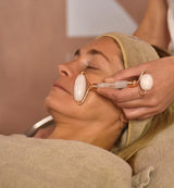 Ce protocole professionnel Roll On intègre des manœuvres dynamiques et très spécifiques pour stimuler le comblement naturel des rides, estomper les poches et cernes. Le quartz rose, pierre de douceur aux propriétés apaisantes et anti-âge, ou le jade blanc connu pour se pouvoir harmonisant, sera choisi pour votre soin et contribue à révéler un glow tout naturel.